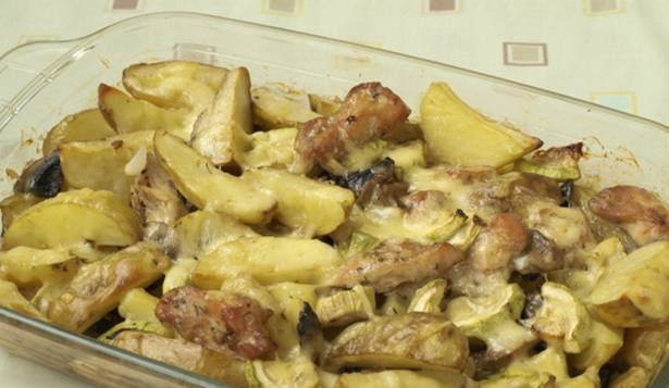 - Een eenvoudig en heerlijk recept voor kalkoen gebakken met aardappelen en kaas in de oven