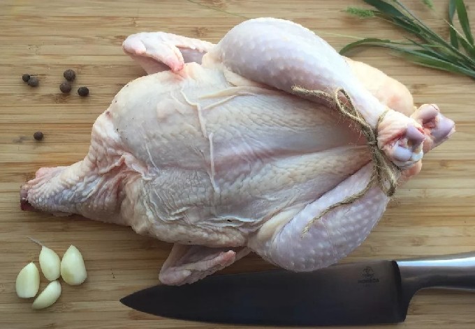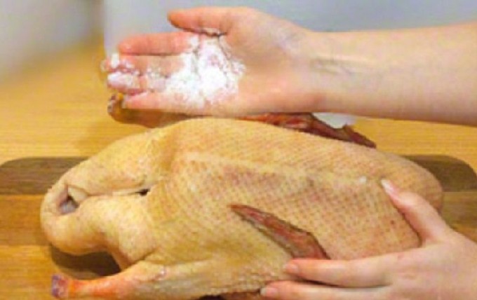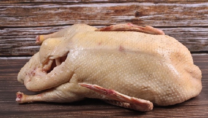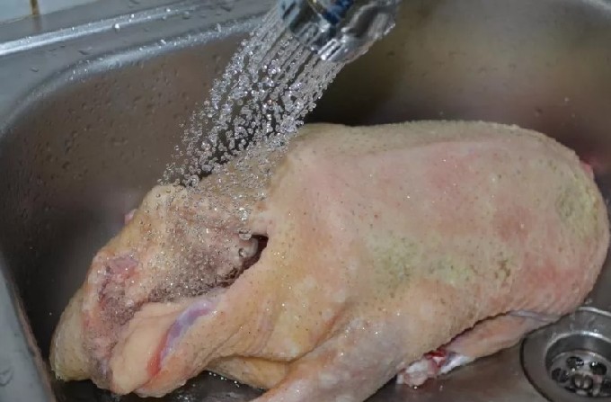- Reinig het karkas van de vogel van de resten van veren, schroei de pluisjes en spoel grondig met heet water.