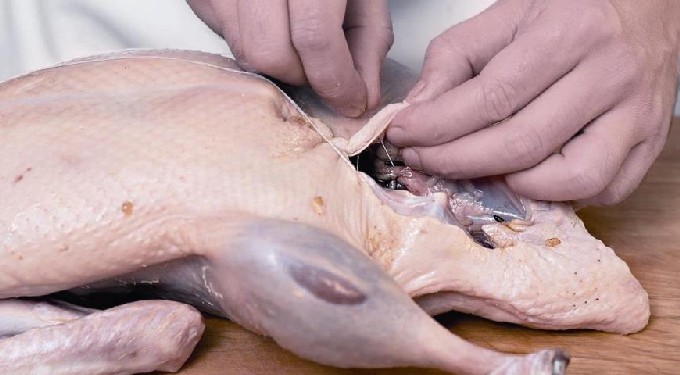 - Spoel het pluimveekarkas goed af met heet water om alle stof en vuil te verwijderen en verwijder de resterende veren met een pincet.