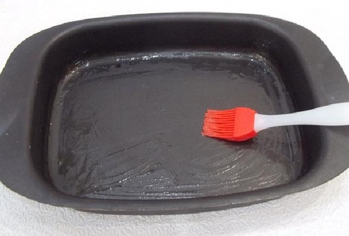 - We besmeren een bakplaat of een andere ovenschaal met olie en plaatsen de vogel erop, met zijn buik naar beneden.
