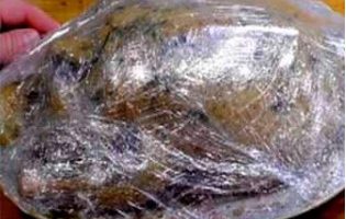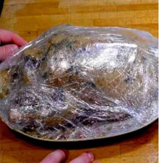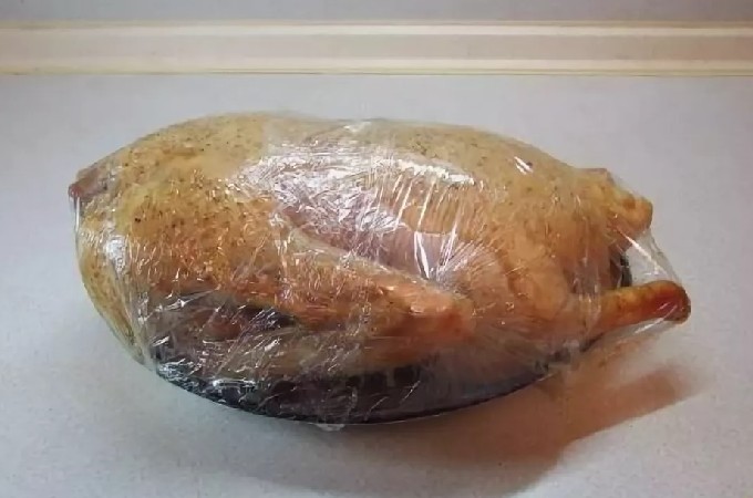 - Plaats de vogel in een culinaire hoes, waarvan de uiteinden worden vastgezet met clips.