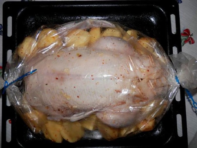 - Leg het gevogelte vervolgens in een zak op een bakplaat.