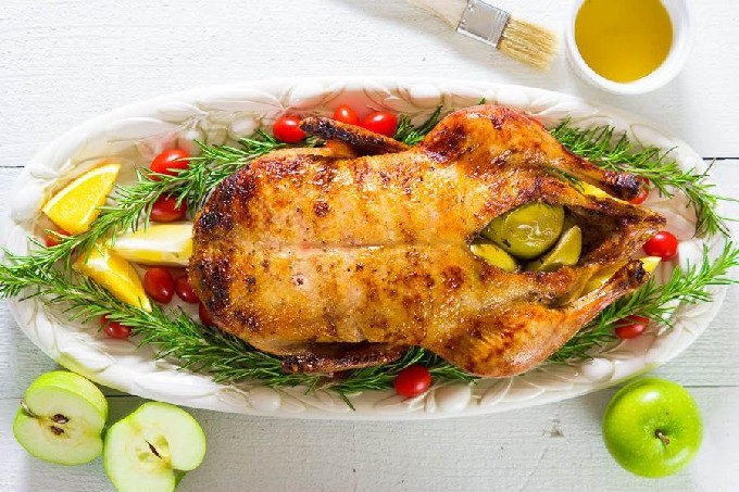 Volgens het voorgestelde recept kunt u een voortreffelijk gerecht bereiden voor een feestelijke tafel met Indo-melk. Het gevogelte is gevuld met appels, waardoor het vlees bijzonder mals is en met een aangename zoete nasmaak. Binnen wordt gebakken in de culinaire hoes. Kies voor het bakken een karkas van goede kwaliteit, omdat de belangrijkste smaakaspecten hiervan en de leeftijd van de vogel afhangen.