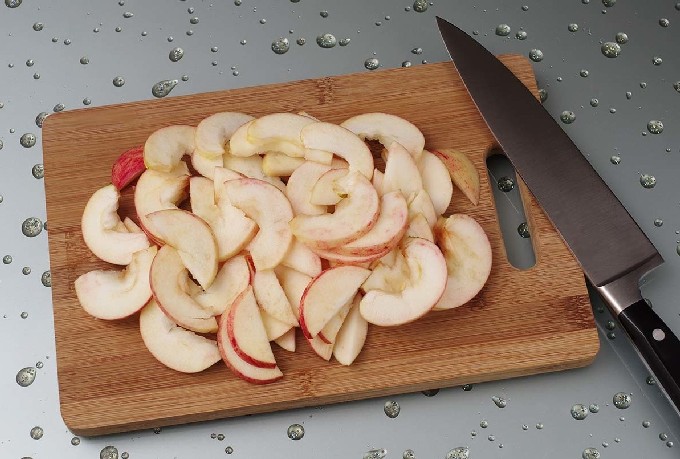 - Was de appels, schil ze en snijd ze in plakjes.