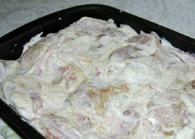 - Besmeer alle stukken gevogelte royaal met zure roomsaus.