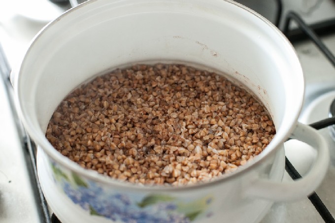 - Kook de boekweit in een aparte pan tot hij half gaar is.