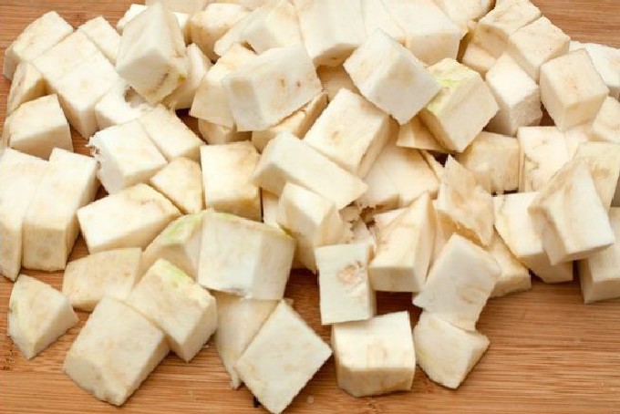 - Was de stengels of knolselderij en snijd ze in kleine stukjes.