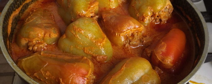 Paprika gevuld met rijstgrutten en gehakt is een variatie op de populaire gevulde koolrolletjes, maar peper geeft dit gerecht een meer pikante en delicate smaak.