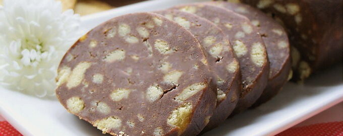 Chocoladeworst gemaakt van koekjes en cacao - een klassiek recept Chocoladeworst is een populaire traktatie die velen al van kinds af aan kennen.