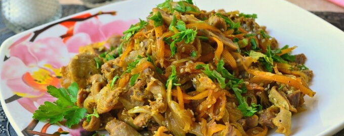 Kippenmagen gestoofd in zure room in een pan Geurige kippenmagen in zure roomsaus zijn niet alleen een stevige maaltijd voor uw gezin, maar ook voldoende