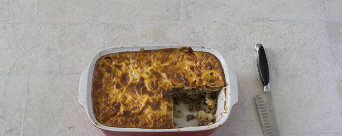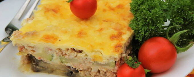 Moussaka behoort tot de Griekse keuken. Het is een schilferige braadpan met witte saus. Het gerecht blijkt sappig en smakelijk te zijn.