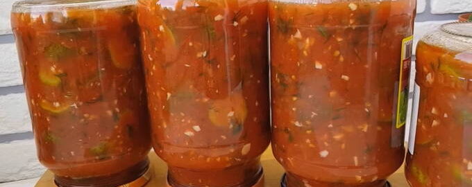 Om de winter lekker te maken, moeten recepten al in de zomer worden gezocht.Komkommers in tomatensaus zijn een uitstekende vervanging voor salades gemaakt van seizoensgroenten en vormen een perfecte aanvulling