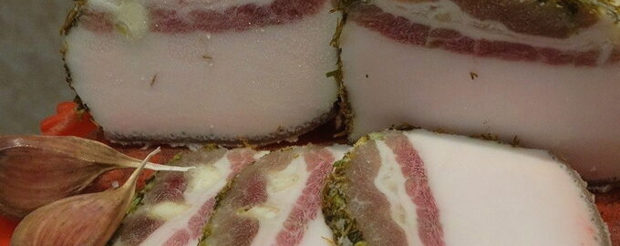 Zacht spek met knoflook thuis Voor liefhebbers van hartige en aromatische zelfgemaakte snacks is een eenvoudig recept voor het zouten van spek met knoflook geschikt.
