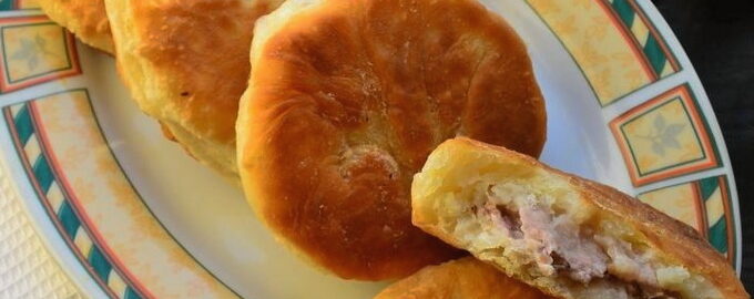 Heerlijke huisgemaakte blanken met vlees, gebakken in een pan Heerlijke huisgemaakte blanken zijn knapperige goudbruine korst en sappige vleesvulling.