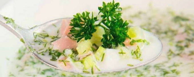 Koude soepen zijn heerlijk in het hete seizoen. Bijvoorbeeld de beroemde okroshka. Er zitten veel groenten in. Dit gerecht verkwikt en lest de dorst.