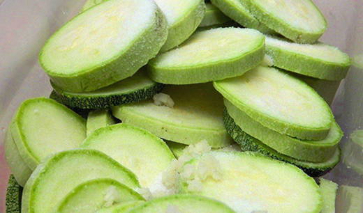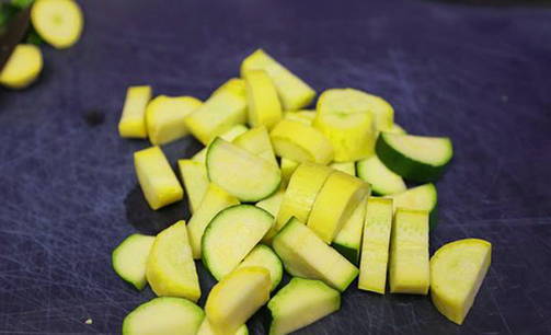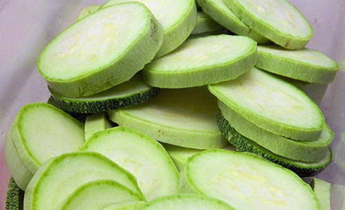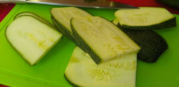 - Snijd de courgette in plakjes van 0,5-1 cm breed.