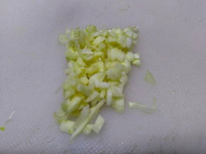 - Hak de knoflook fijn of haal door een pers.