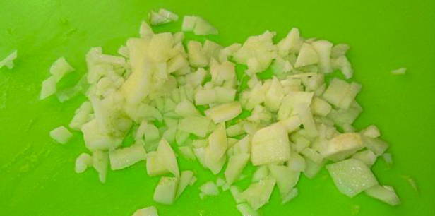 - Snijd de uien en de vetstaart zeer fijn.