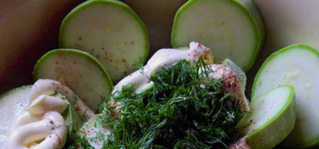 Mayonaise en knoflook zijn ideaal voor het marineren van courgette. Deze twee ingrediënten zijn perfect in harmonie met groenten en dragen bij het bakken bij aan de vorming van een goudbruine knapperige korst.
