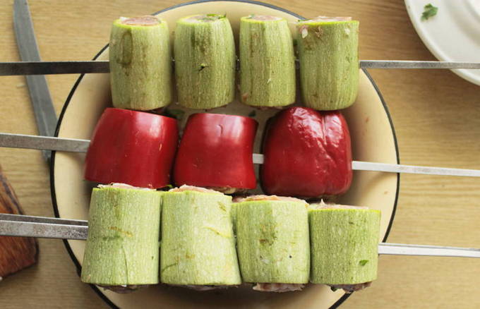 - Stap-voor-stap recept voor het koken van courgette op spiesjes op de grill