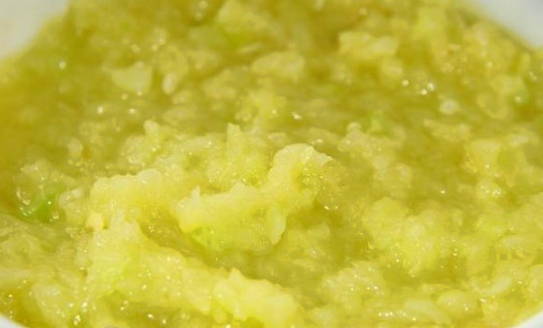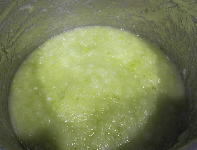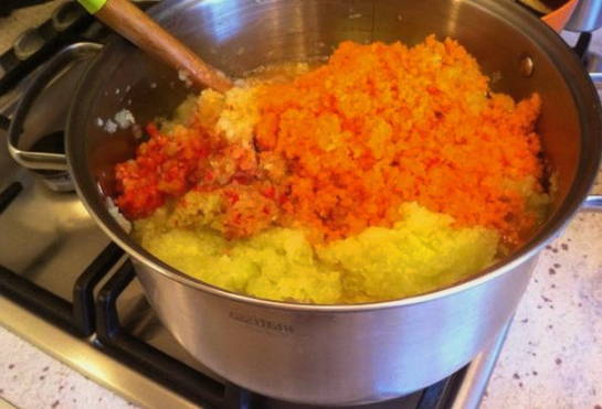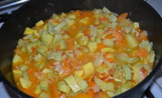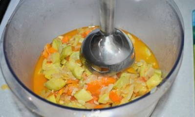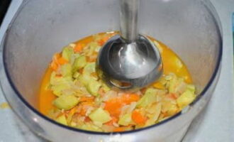 - We wassen de courgette, paprika en uien. Maal groenten in een blender, doe ze in een pan en laat ongeveer 40 minuten sudderen.