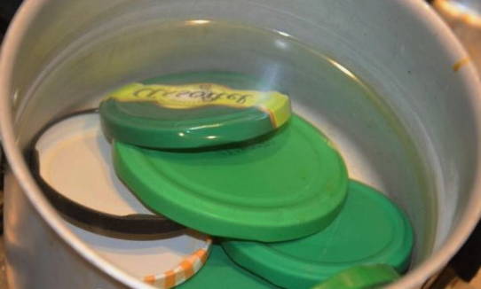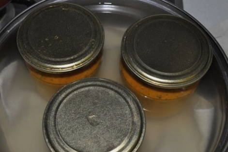 - We schenken de lekkernijen in gesteriliseerde potten en sluiten ze af met deksels.