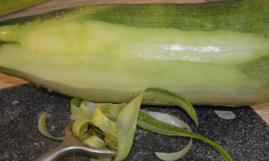- Koel de afgewerkte courgette en schil deze.