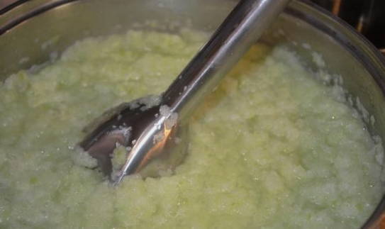 - Laat het voedsel ongeveer 10 minuten sudderen en maal het vervolgens in een blender.