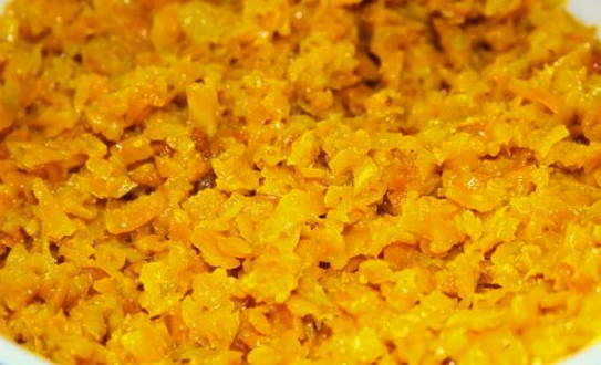 - Wrijf de wortelen op een grove rasp.