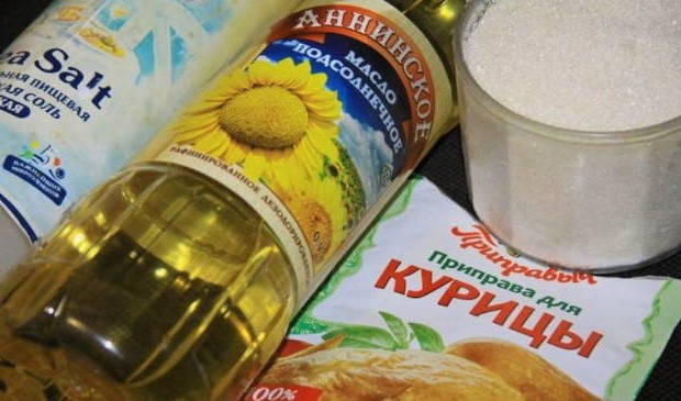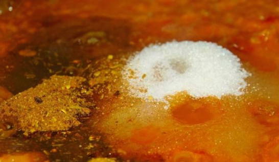- Voeg hier zout, suiker, kruiden en een beetje plantaardige olie toe. We zullen nog 30 minuten wegkwijnen.