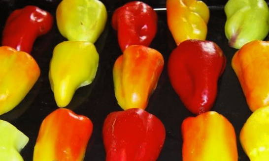 - Ook van de paprika's verwijderen we voorzichtig de schil.
