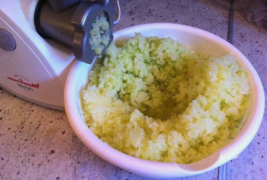 - Schil de courgette en wrijf deze op een fijne rasp.