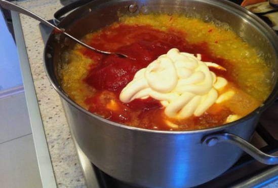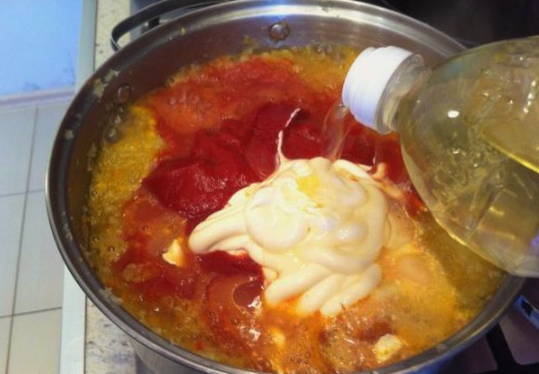 - Courgettekaviaar met mayonaise en tomatenpuree in een slowcooker