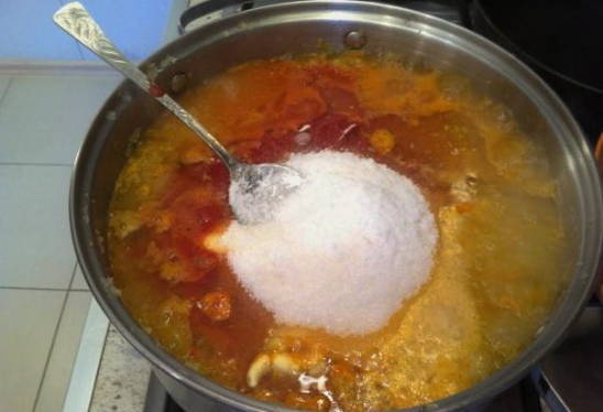 - We vullen aan met zout en suiker. Roer en laat nog 30 minuten sudderen.