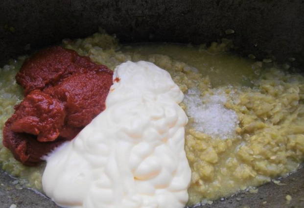 - Courgettekaviaar voor de winter met mayonaise, tomatenpuree, wortel en ui