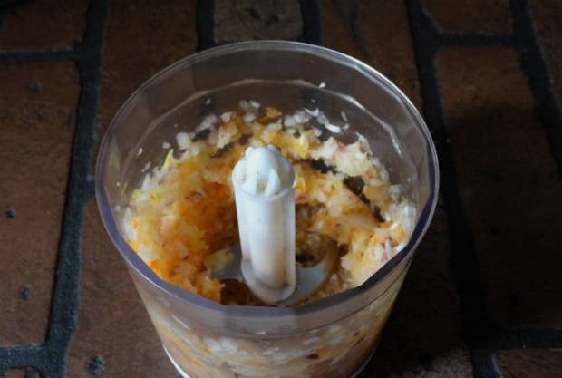 - Maal de ui met paprika fijn in een blender.