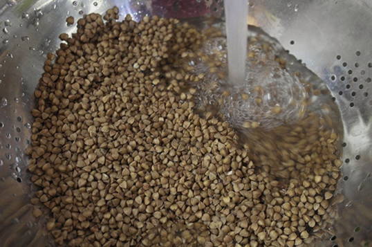 - Spoel de boekweit goed af met water.