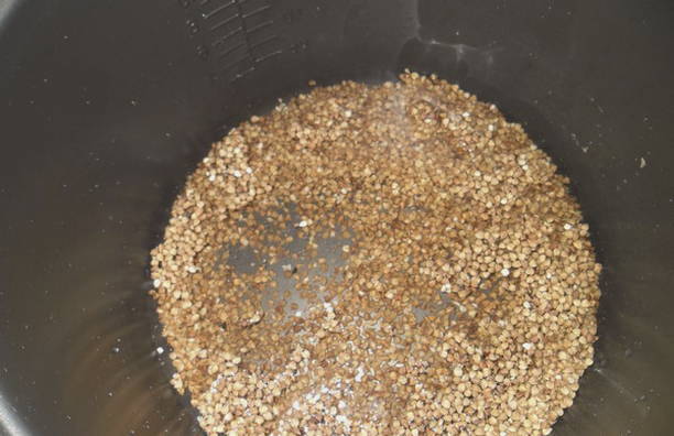 - Sorteer de boekweit en spoel af. Giet de ontbijtgranen in de kom van de multikoker.