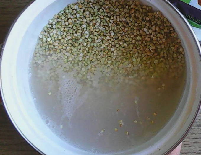 - Spoel de boekweit af met stromend water en voeg toe aan een pan. Giet de benodigde hoeveelheid water erin.
