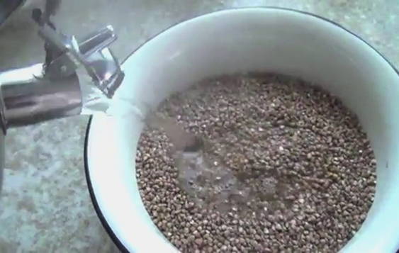 - Giet boekweit met koud water en laat 10 minuten staan.