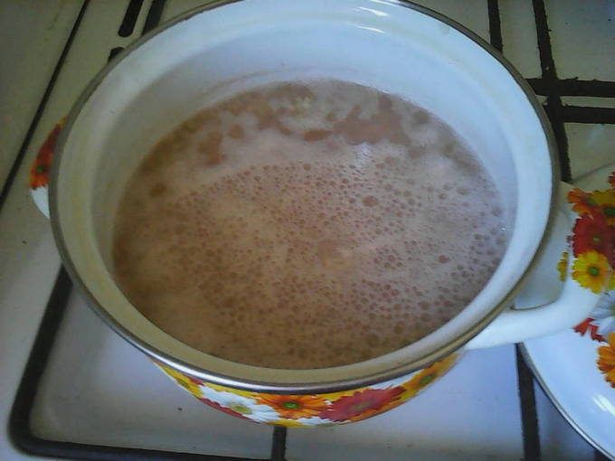 - Giet 2 kopjes heet water in de pan en kook de boekweit 15-20 minuten op middelhoog vuur.