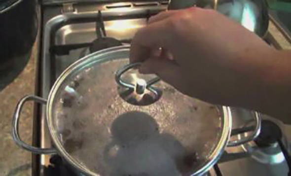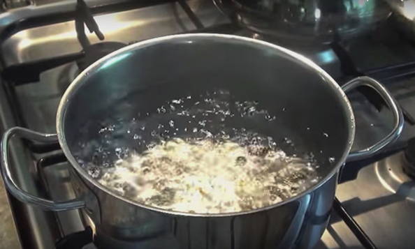 - Zodra het water kookt, haal je de pot boekweit van het vuur.