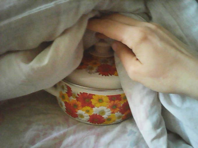 - Bedek de pot met een deksel en wikkel hem in een warme deken, waar hij binnen 20-25 minuten gaar zal zijn.