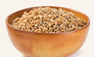 - Breng de boekweit over in kokend water, roer en breng aan de kook. Bedek de pan met een deksel, zet het vuur lager en kook de boekweit een half uur.