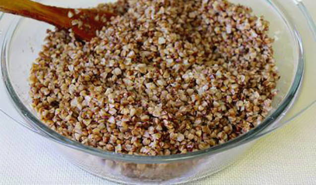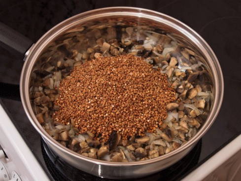 - Voeg vervolgens de gewassen boekweit toe.