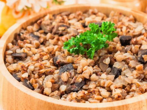 - Serveer warme boekweitpap met champignons.