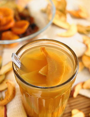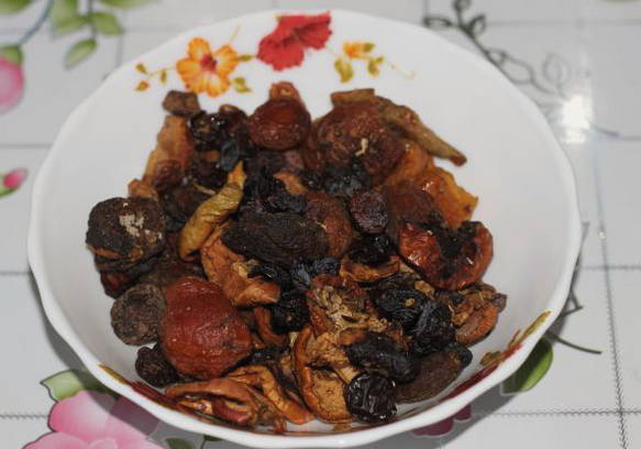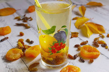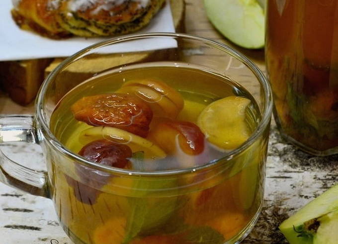 Een veelzijdige drank die zowel warm als gekoeld gedronken kan worden. Gedroogde fruitcompote wordt meestal bereid bij koud weer, wanneer verse bessen en fruit schaars zijn.