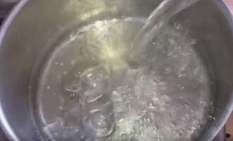 Giet water in een pan, zet in brand en breng aan de kook.