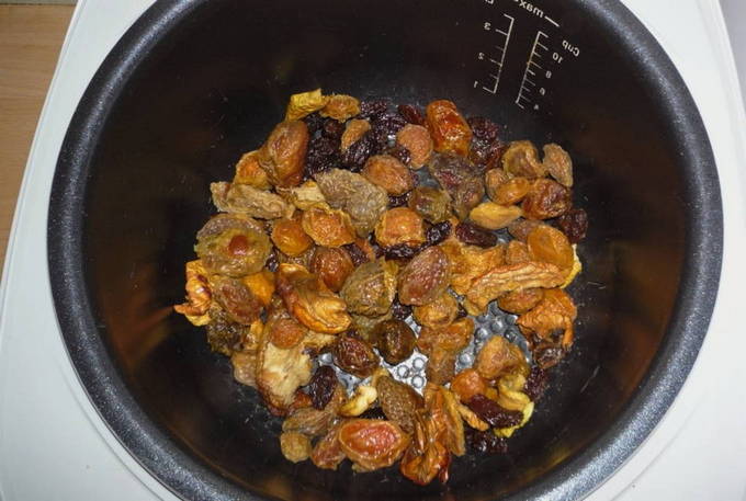 - Een stapsgewijs recept voor het maken van compote van een mengsel van gedroogd fruit in een slowcooker