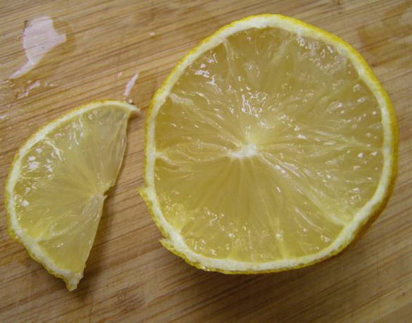 - Snijd de citroen in kleine partjes.